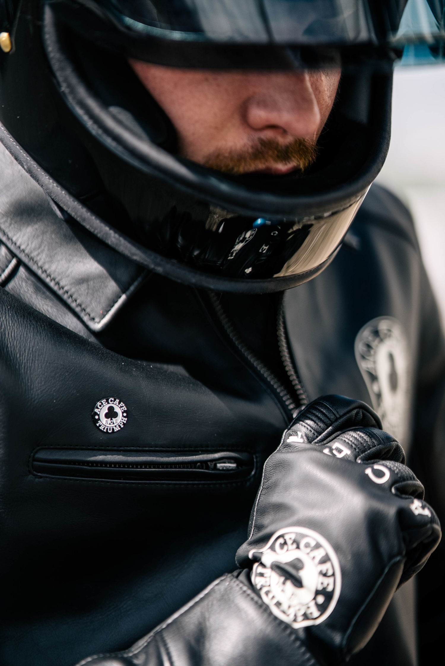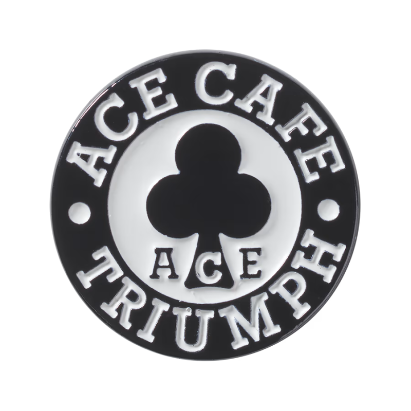 Ace Cafe Triumph round enamel pin badge with butterfly clip fastening.