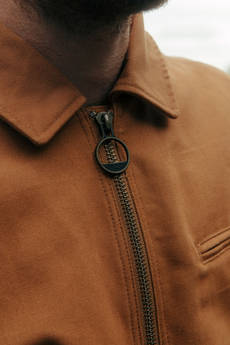 The rugged duck canvas outer softens and seasons over time, adding a look that's unique to you, and the super soft blanket body liner makes it just as cozy as your winter wool staples. Little details finish the Barnes off perfectly, an antique brass center zip, double welt zipping chest pocket and the Triumph branded zip pull.