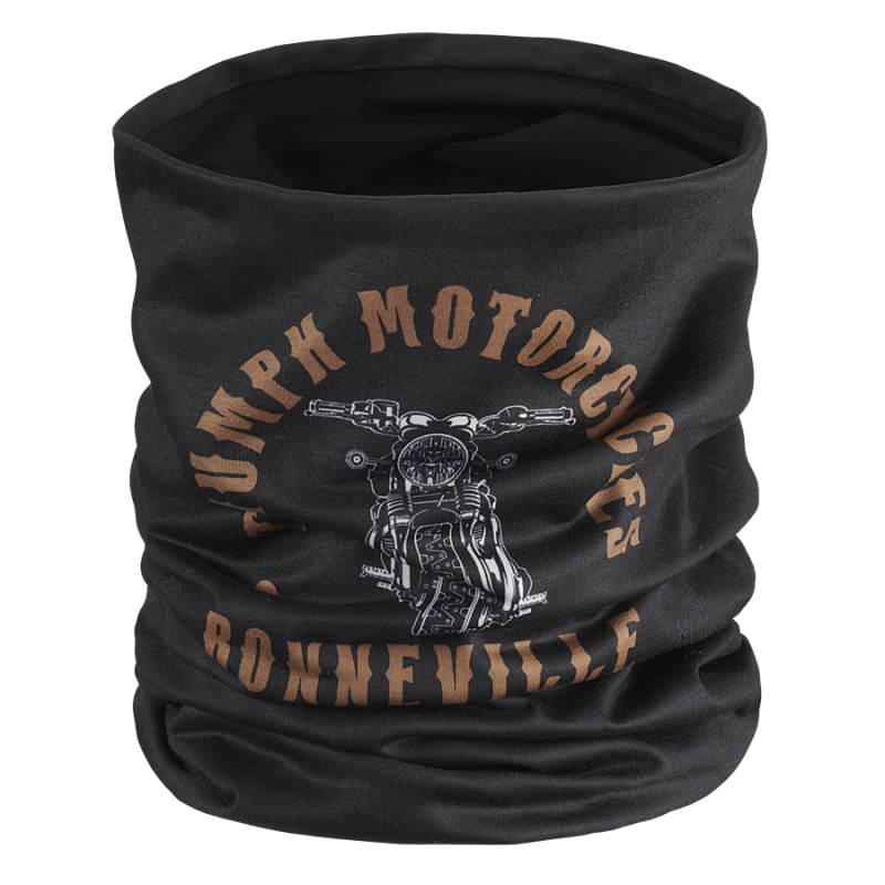 Capture the spirit of decades of innovation and evolution with this neck tube. Engineered for all conditions, it's your shield against wind, cold and sun. Featuring Bonneville T120 graphic and constructed from breathable two layers of soft stretch fabric. One size fits all.