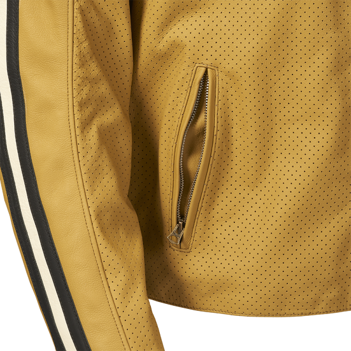 Meticulously constructed for the Modern Classic Rider, timeless style with modern functionality. The Braddan Air Race Jacket boasts a thoughtfully perforated design, strategically enhancing airflow without compromising safety.