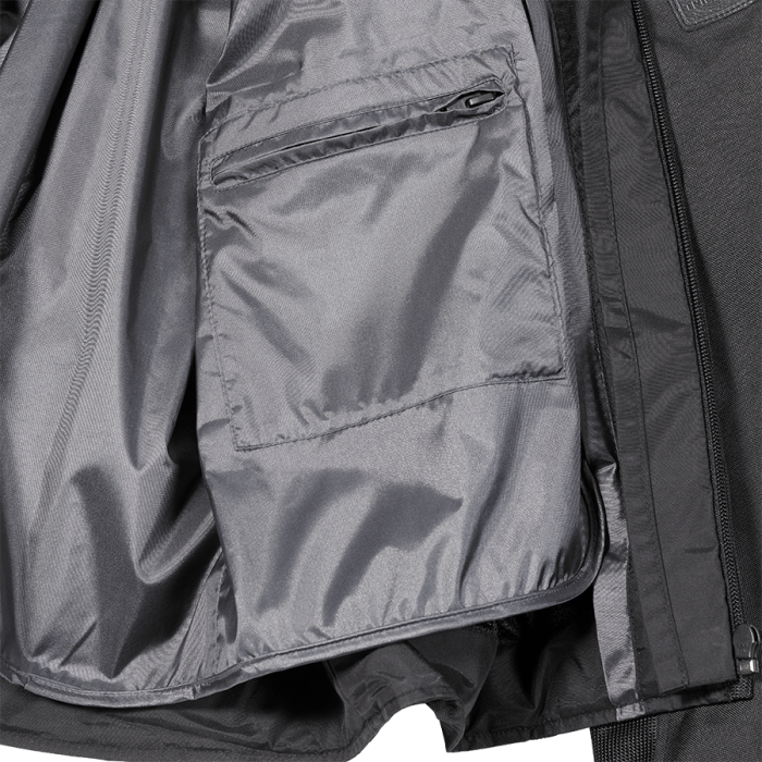 Featuring quilt stitched shoulders, leather applique to lower back and zip out shower proof liner.