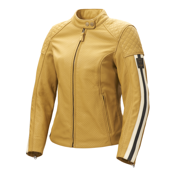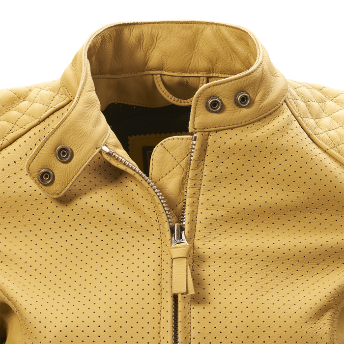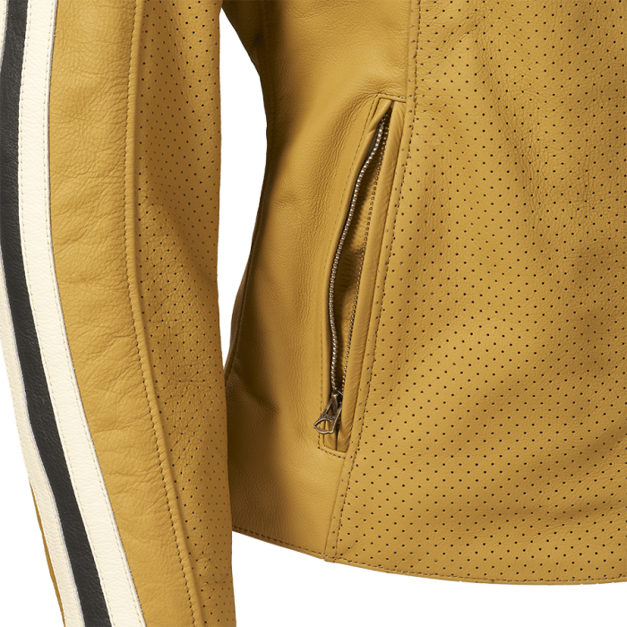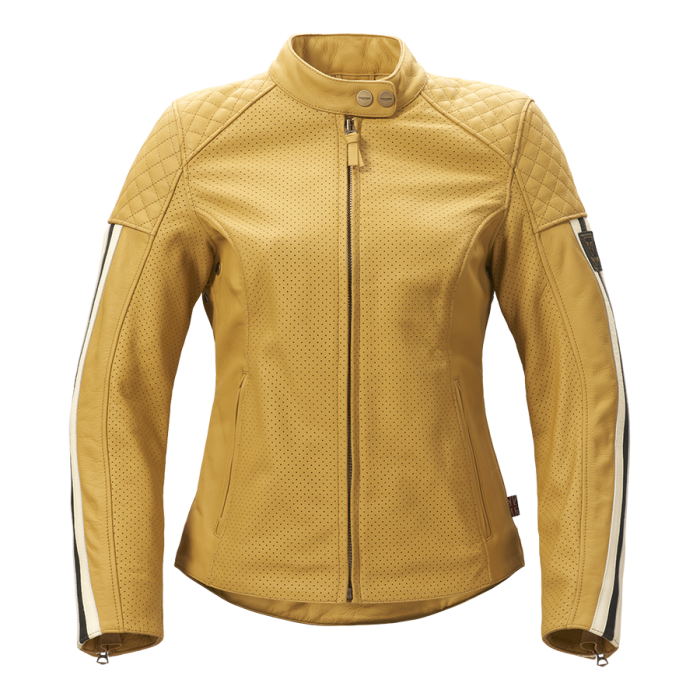 The Braddan Women's Air Race Jacket boasts a thoughtfully perforated design with tailored fit, strategically enhancing airflow without compromising safety.