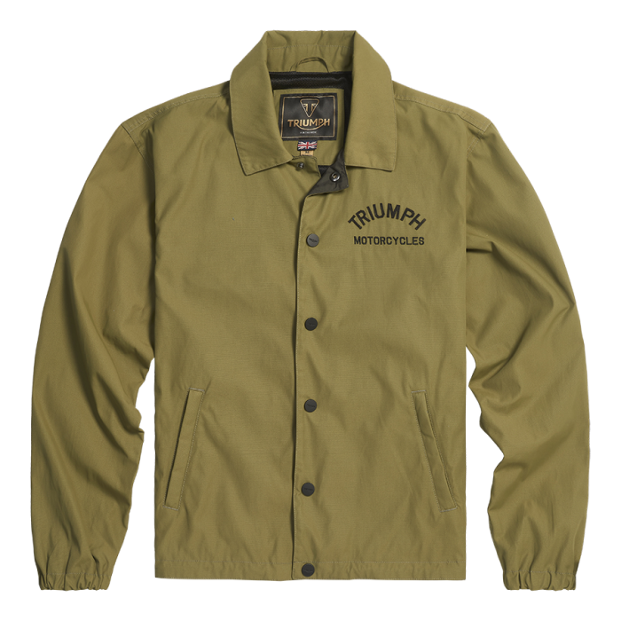Clean, lightweight and dependable, the Carter Coach Jacket is any riders staple casual classic layering piece. Ideal for unpredictable summer days and cooler evenings. Featuring front pockets, popper fastening and Triumph Motorcycles branding on the chest and large arched lettering on the back. Material: 59% nylon / 41% cotton.UPS Shipping