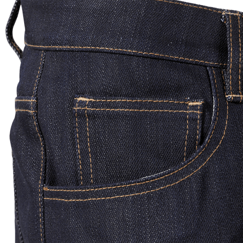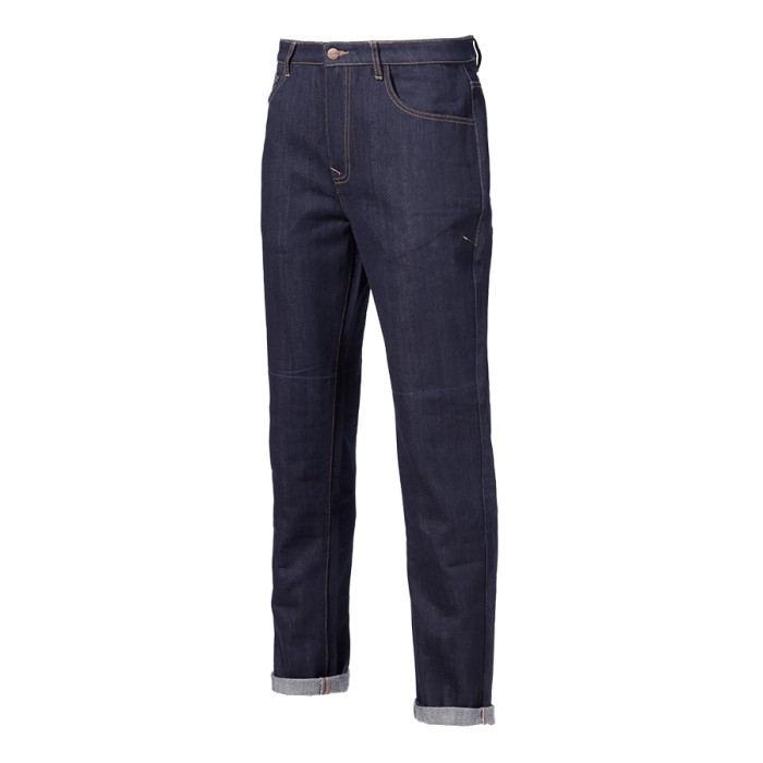 Classic 5 pocket regular tapered fit jean with stretch, with single layer rider protective 13.5oz denim.UPS Shipping