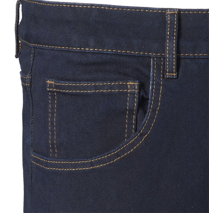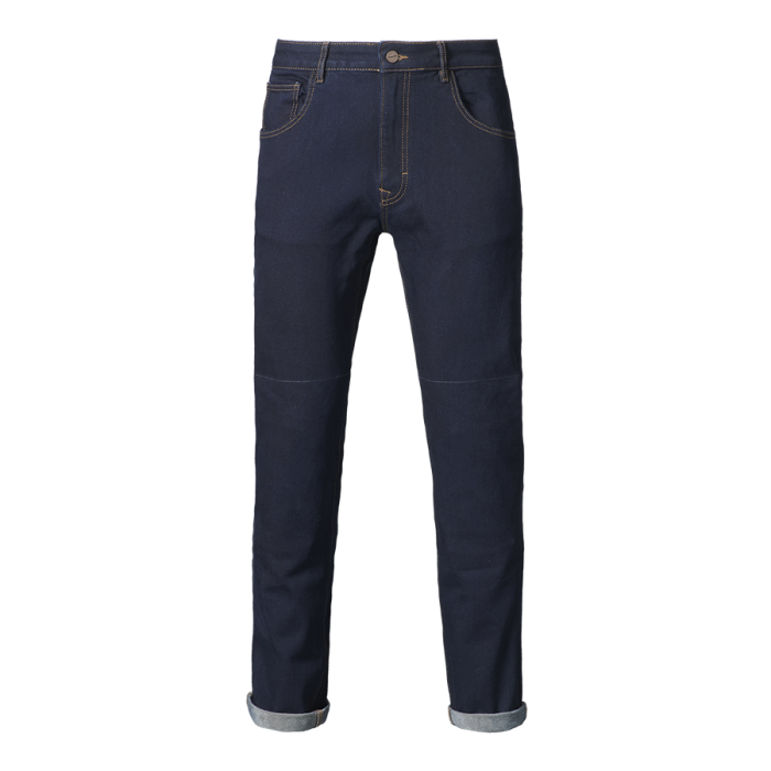 Classic 5 pocket regular tapered fit jean with stretch, with single layer rider protective 13.5oz denim. Featuring new Ghost™ D3O knee protection. Constructed from Polyacrylate fibres, high-performance multi-filament yarns spun from liquid crystal polymers (LCP) which exhibit exceptional strength and rigidity (high tensile and impact strength).
