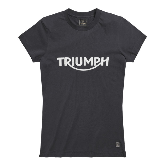 Womens 100% cotton crew neck short-sleeved tee with high quality embroidered Triumph logo and signature Triumph-branded woven label on the lower hem.UPS Shipping