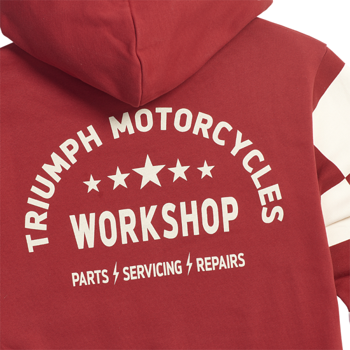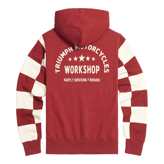 Get race day ready with the Haytham Hoodie. Featuring moto-inspired Triumph Workshop arched graphic, bold checkerboard sleeves and constructed in 100% cotton waffle 360gsm.UPS Shipping