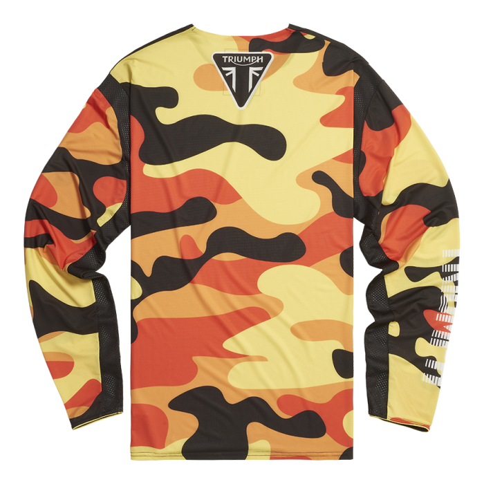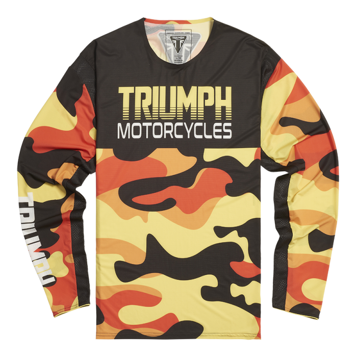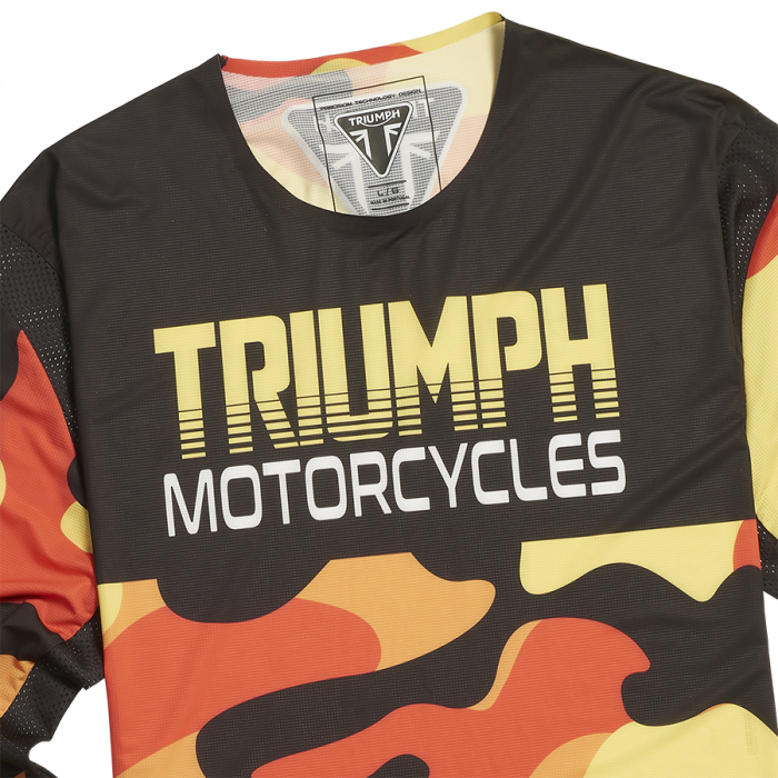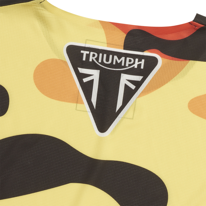 Featuring a lava camo all-over print with Triumph Motorcycles lettering on the chest. This item is larger than standard and can be worn over body armour if desired.