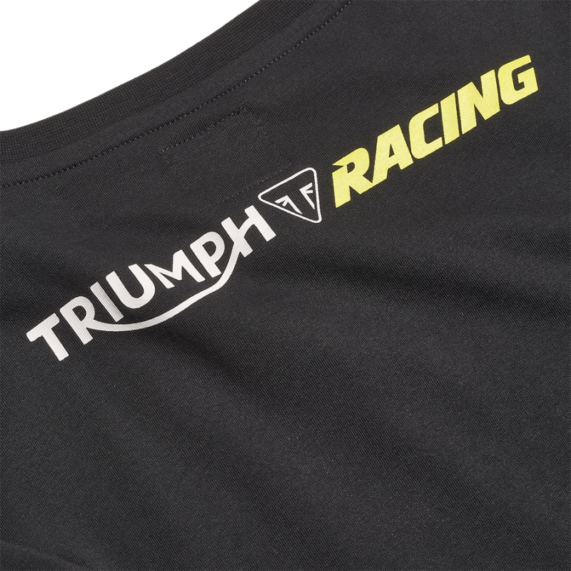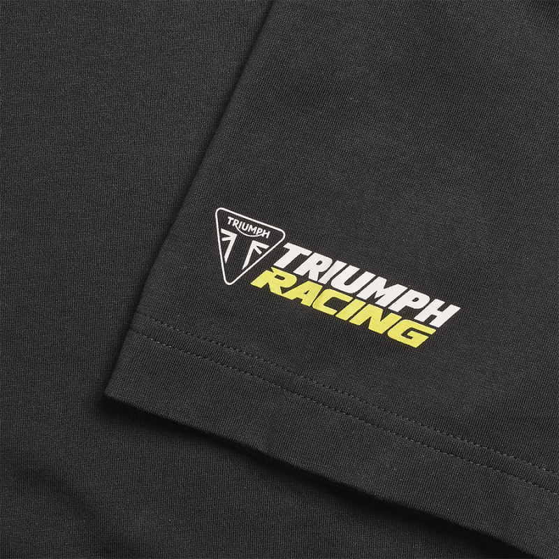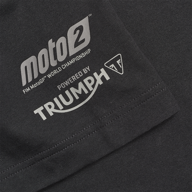 A 100% soft cotton classic fit crew neck tee in black featuring the official Triumph engine supplier logos to Moto2™ printed on the chest, back and sleeve.UPS Shipping