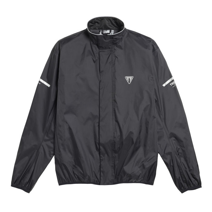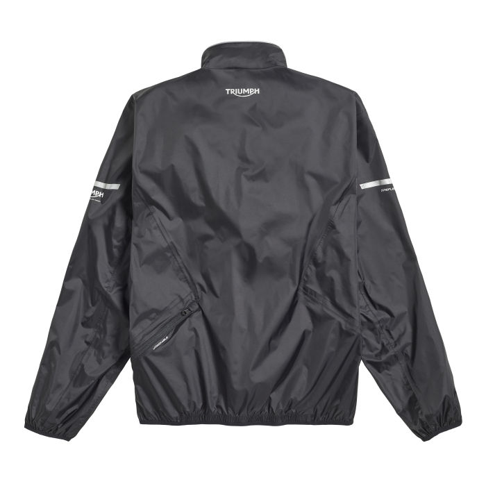 Storm Guard. An extra waterproof outer layer that offers protection in extreme conditions. The rain jacket has tape-sealed seams, an elasticated wrist and waist and features grip material panels to keep the jacket in place when riding. The rain jacket folds up conveniently into its own back pocket to be stored as a neat small pouch when not in use.UPS Shipping