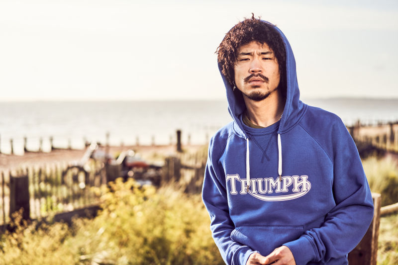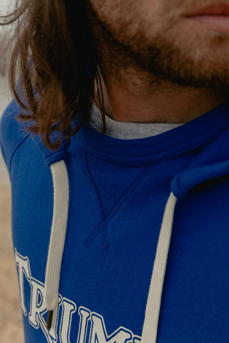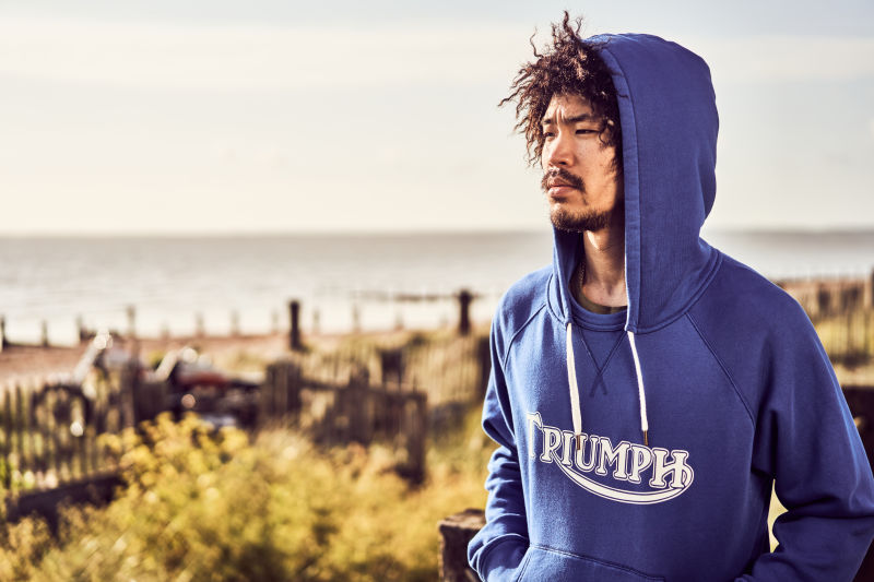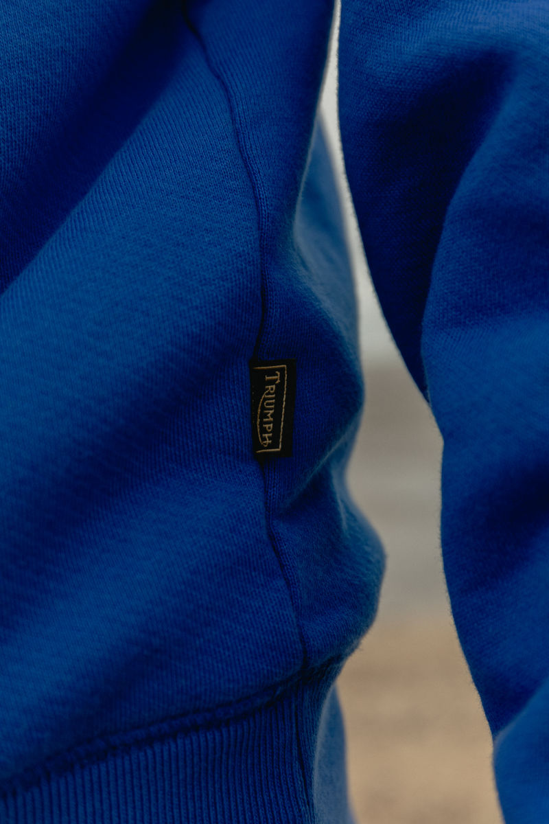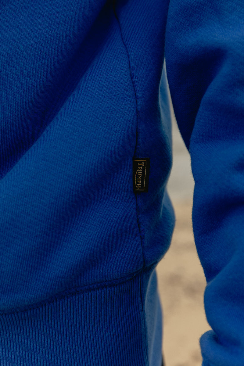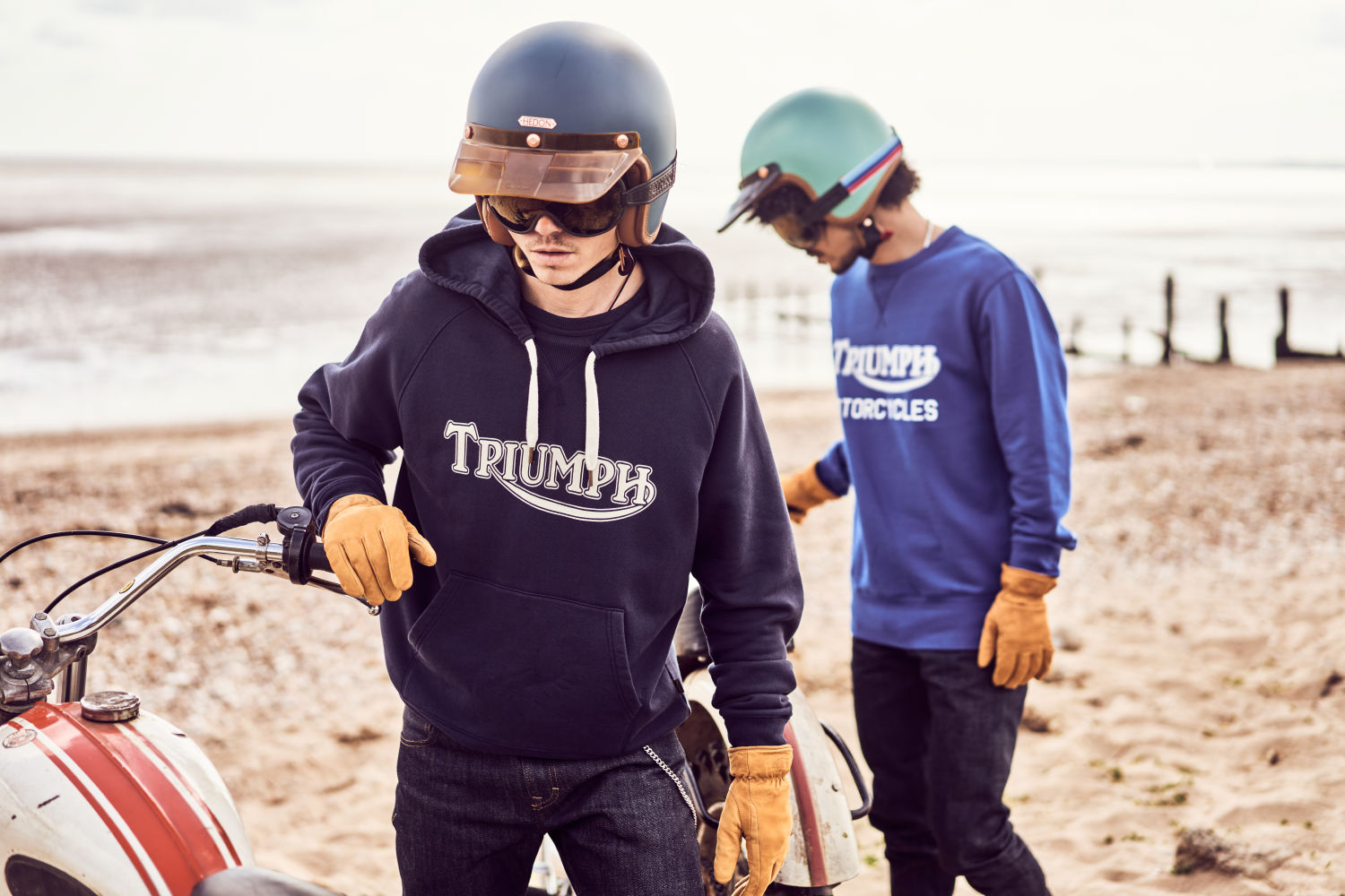 Classic fit heavyweight 400gsm cotton twill hoodie with military overlaid hoodie, kangaroo pocket, v-insert at neck and large Triumph Heritage Logo front and center.