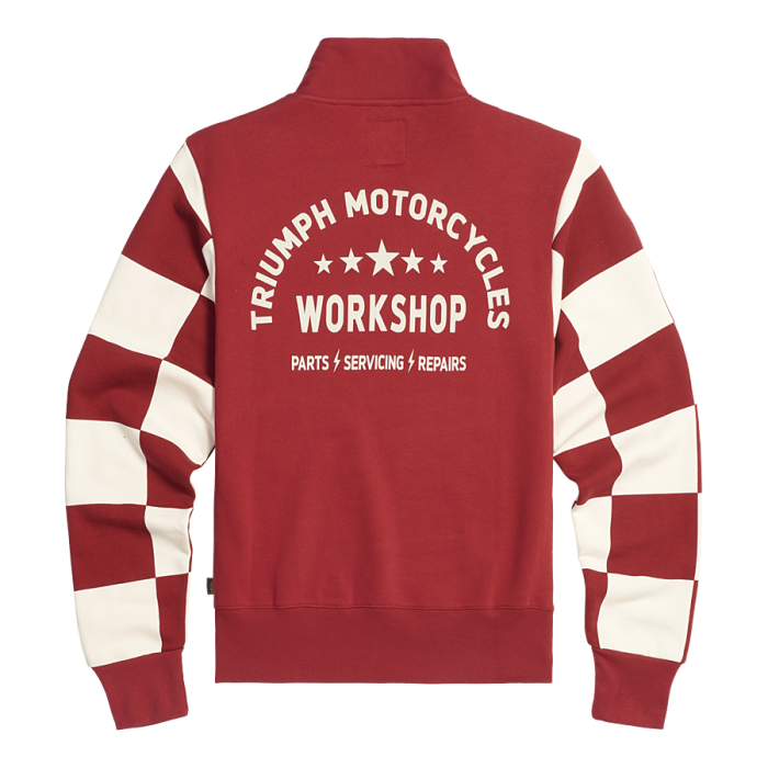 Our checkerboard designs embodies the spirit of our racing heritage with a modern twist. Featuring moto-inspired Triumph Workshop arched graphic, bold checkerboard sleeves and constructed in 100% cotton 360gsm.UPS Shipping
