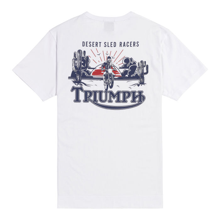 Embodying the spirit of off-roading, this graphic tee captures the rugged landscape of the desert along with our iconic Triumph Lifestyle Heritage Logo.UPS Shipping