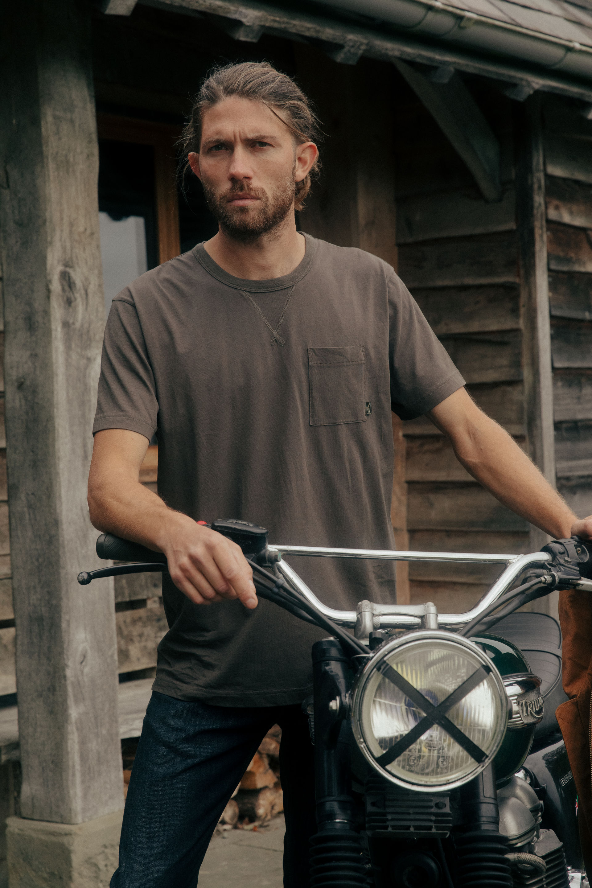 A classic fit tee with left chest patch pocket and "Speedy Bob" back graphic.