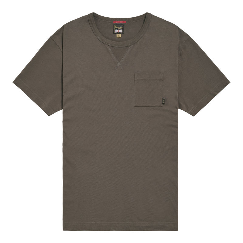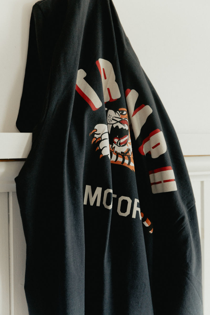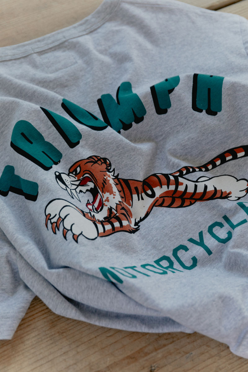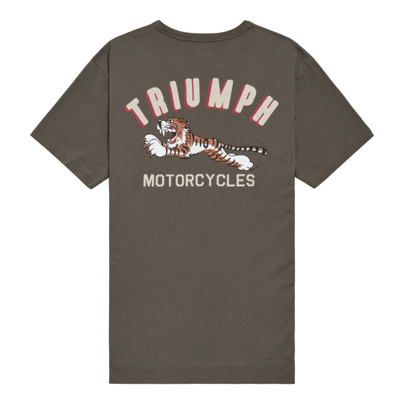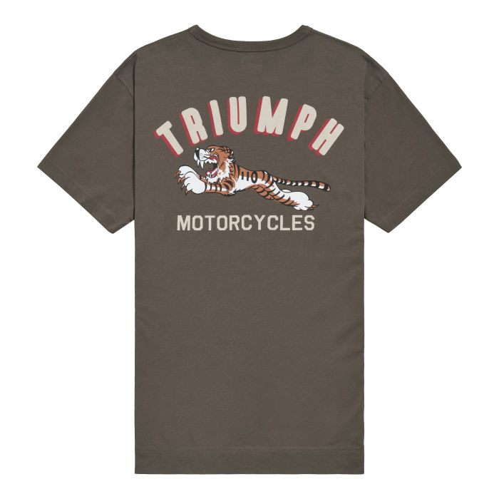 A classic fit tee with left chest patch pocket and "Leaping Tiger" back graphic.