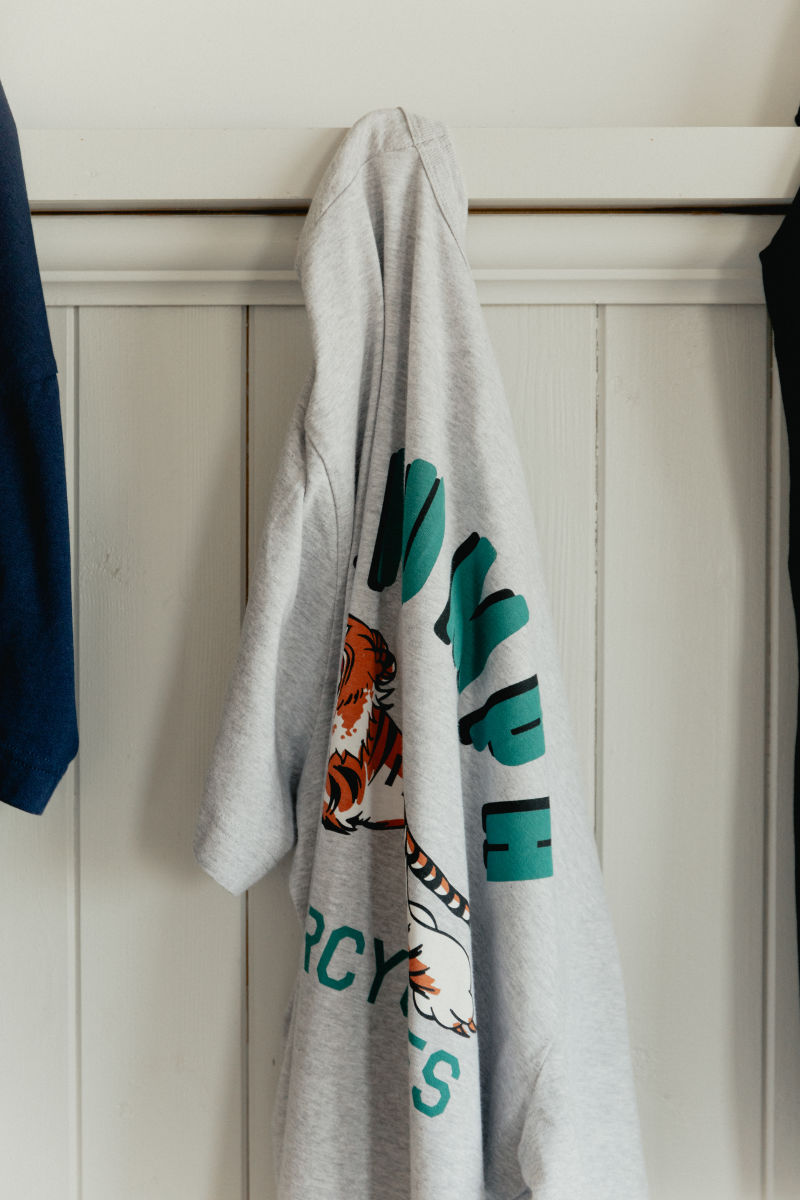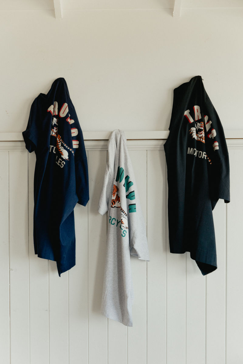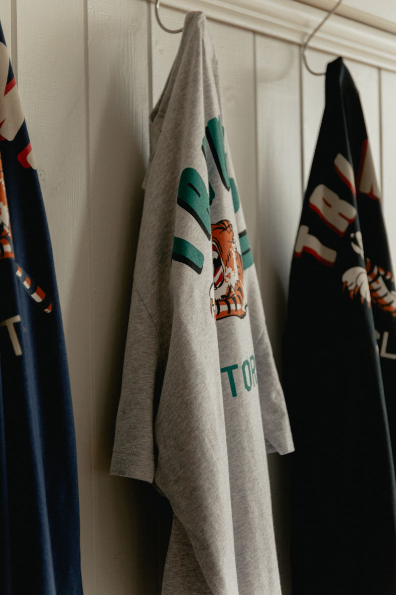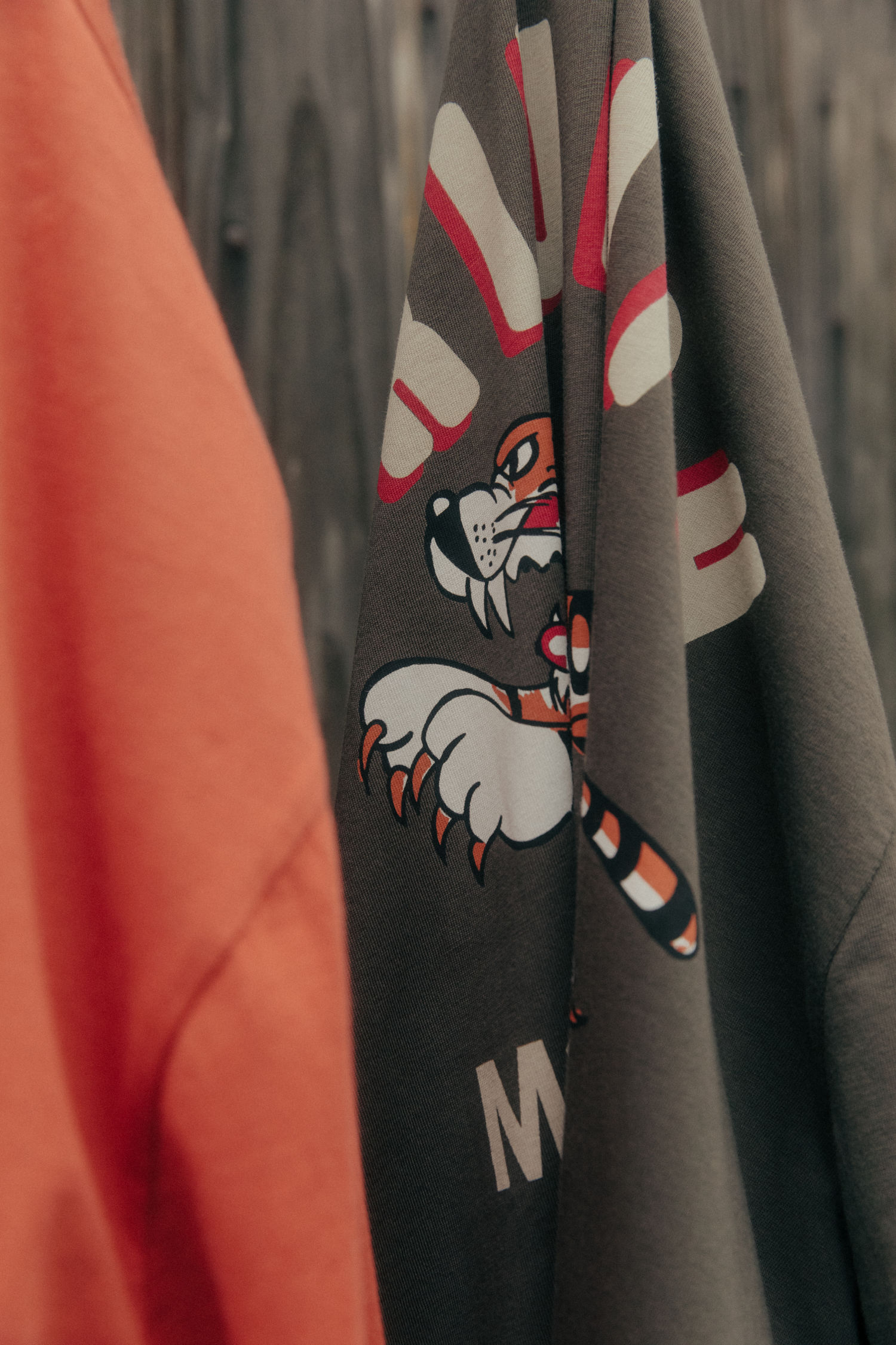 A classic fit tee with left chest patch pocket and "Leaping Tiger" back graphic.