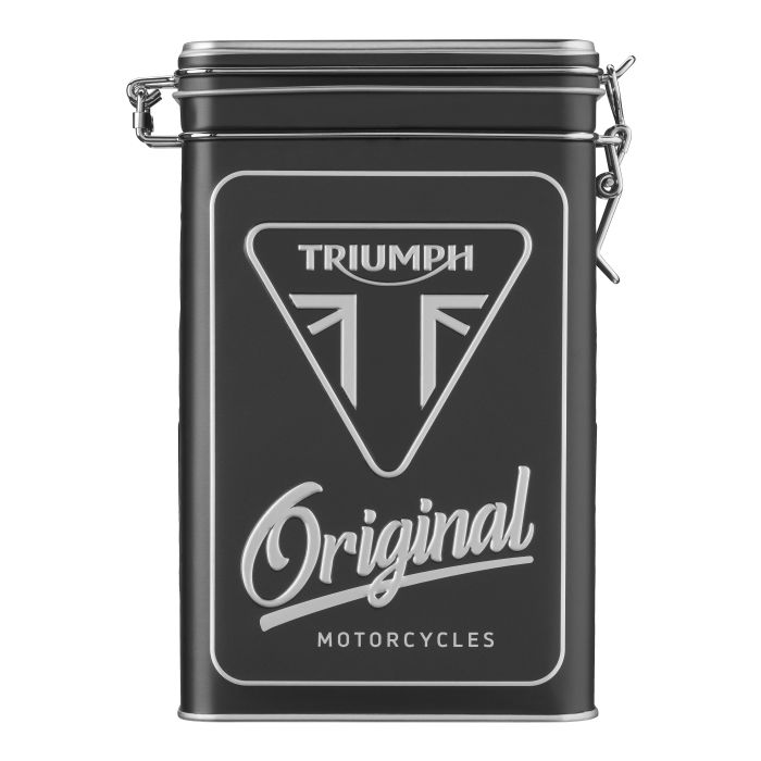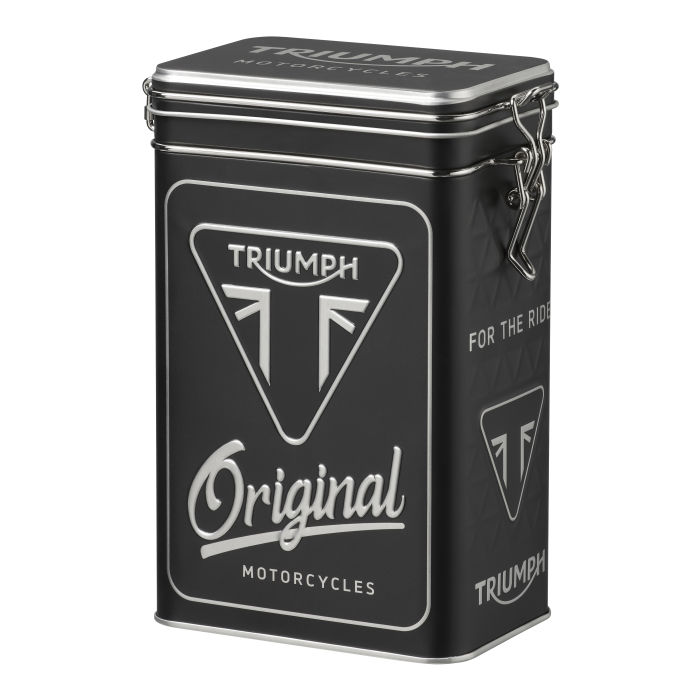 Organize your space with the Triumph Original Clip Top Tin, designed for motorcycle enthusiasts. Perfect for storing tea, coffee, snacks or small essentials.UPS Shipping