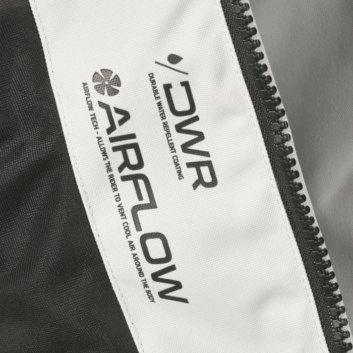 Airflow is managed by opening zip vents to allow cool air to pass through on warmer days