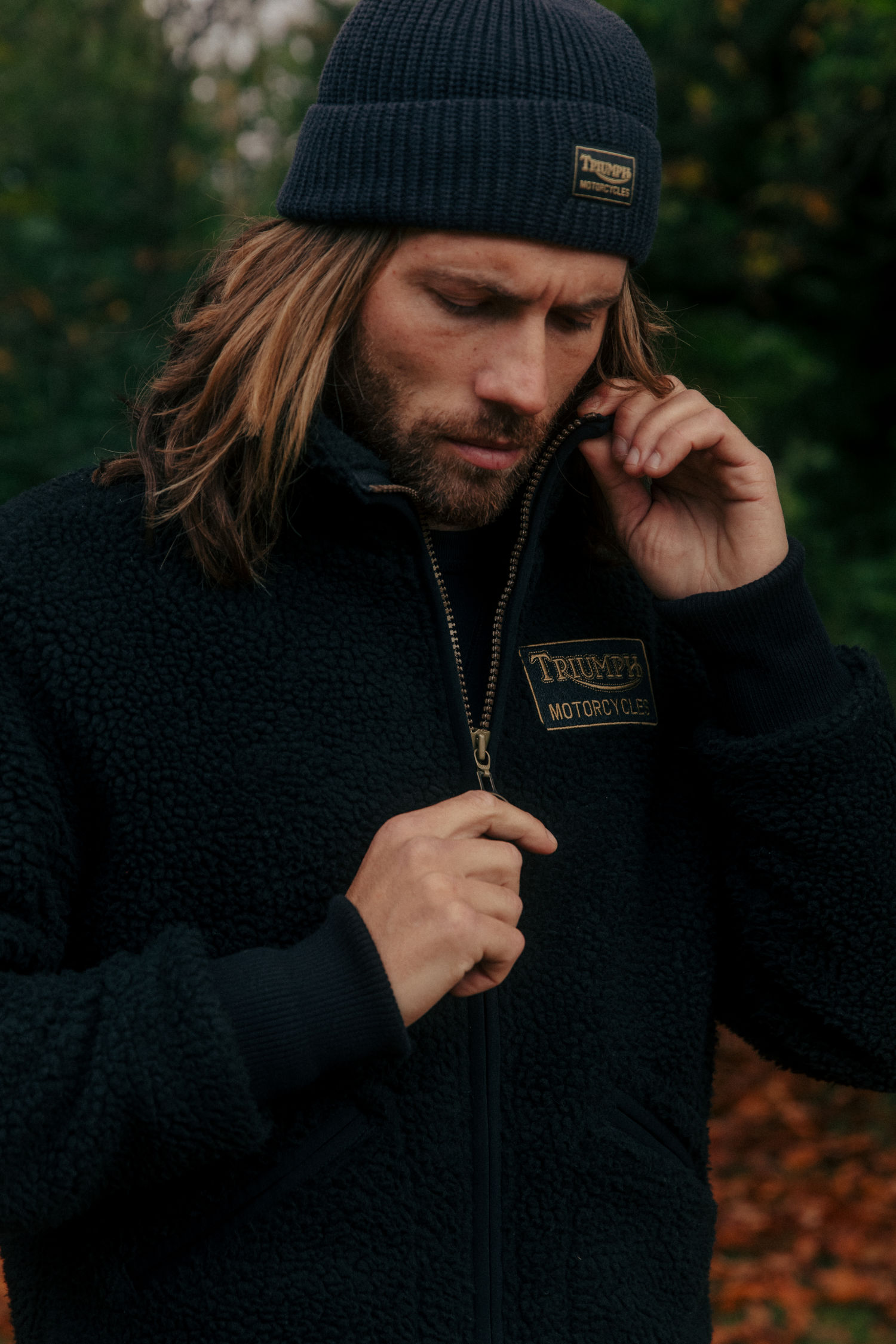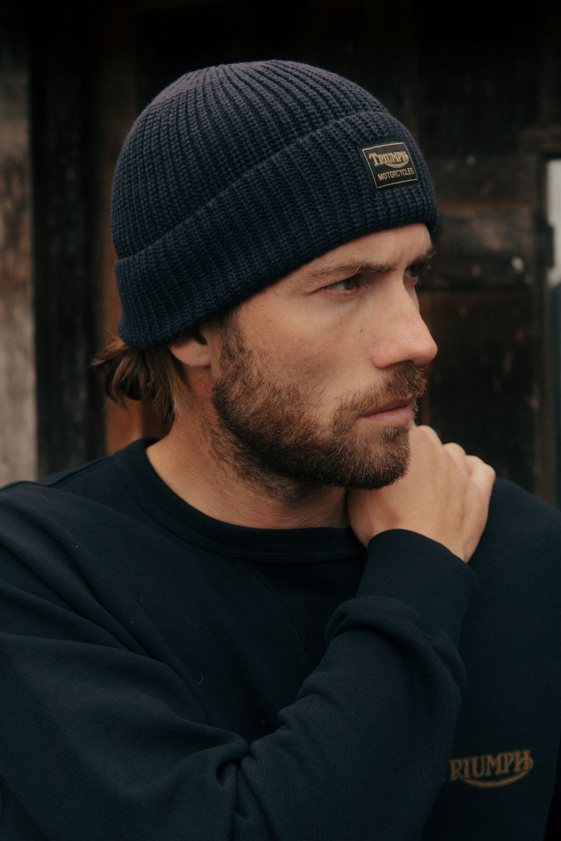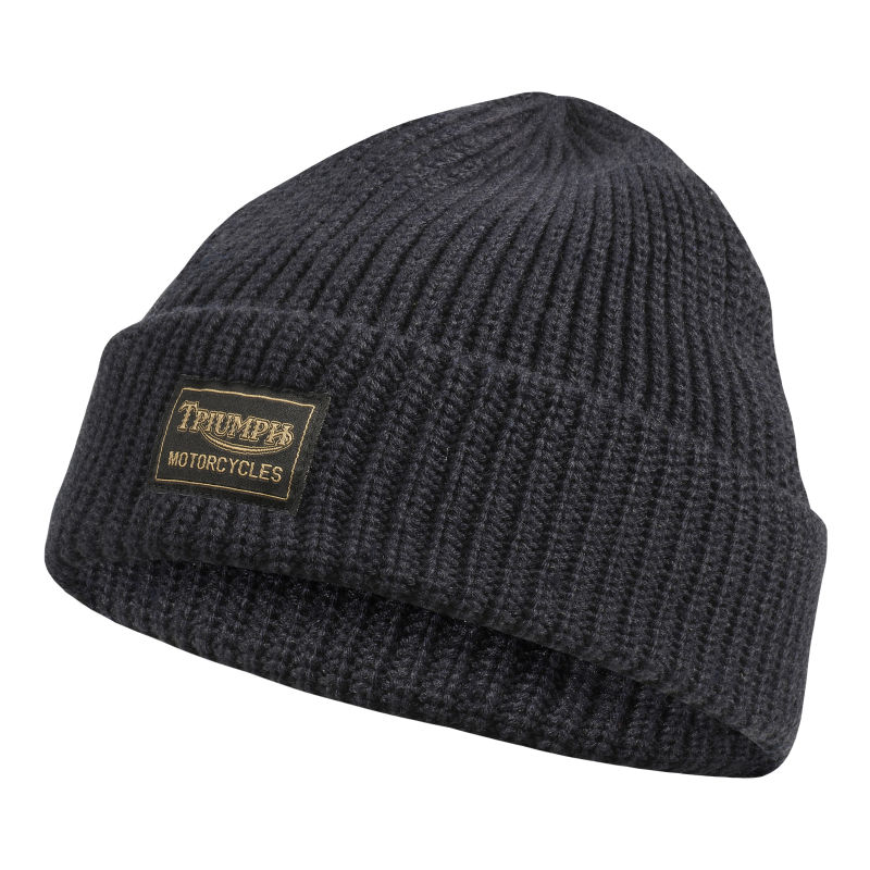 Featuring a knitted rib construction, fold over cuff and is finished with a high-definition Triumph Heritage Logo woven label on the front.