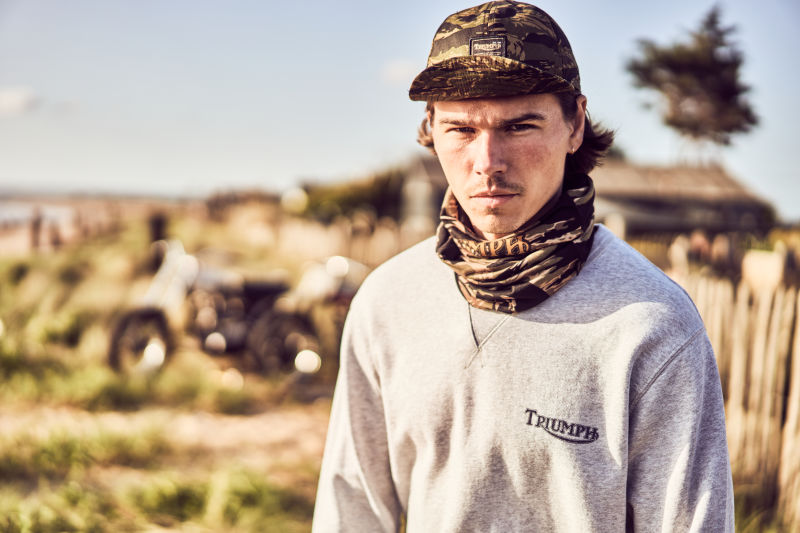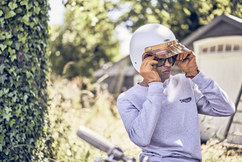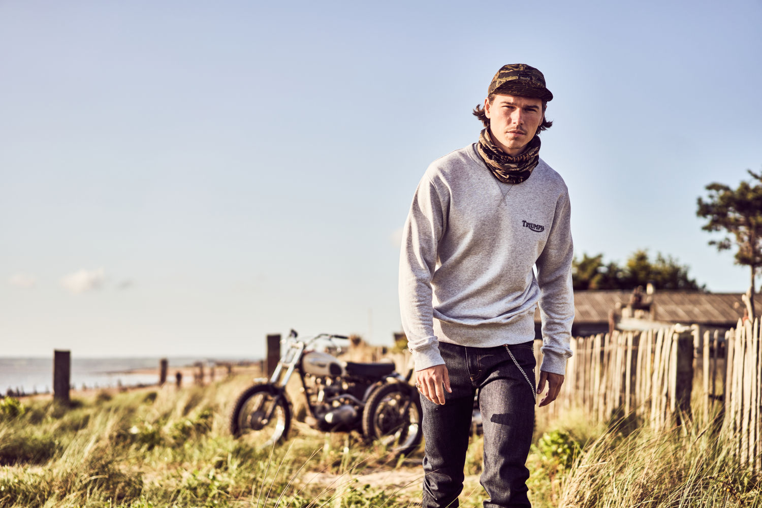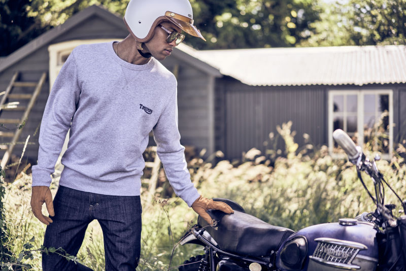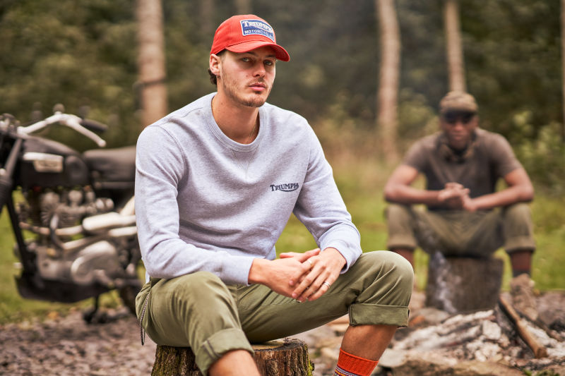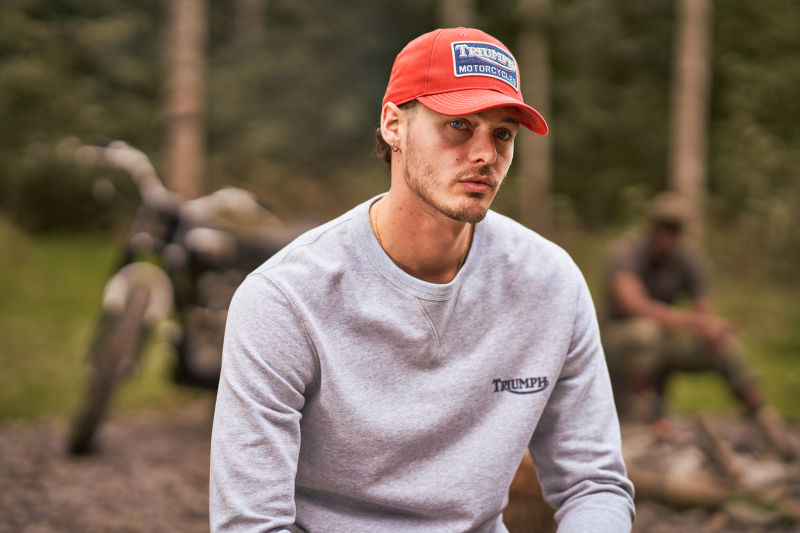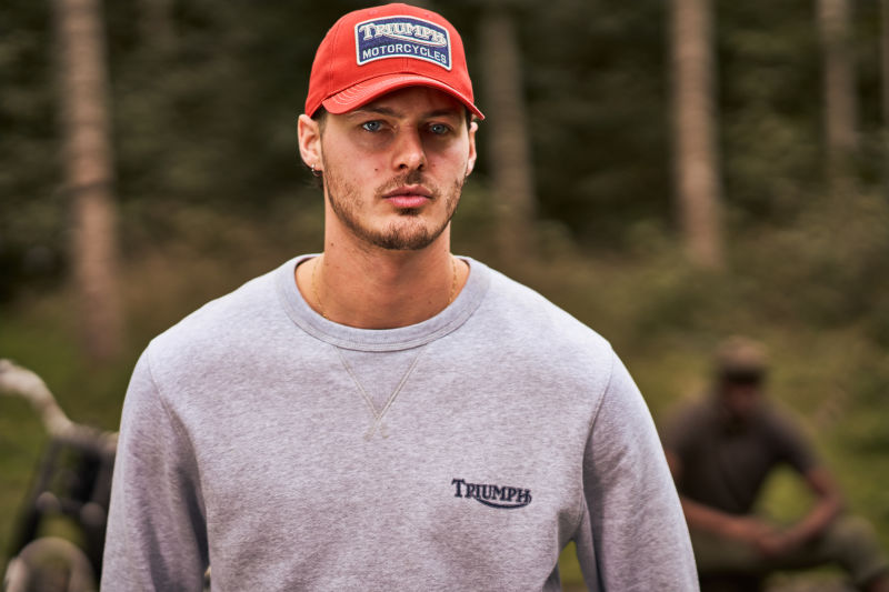 This regular-fit sweat is finished with classic ribbed V-insert at neck, ribbed cuffs and hem, and a subtle Triumph heritage logo print to the left chest.
