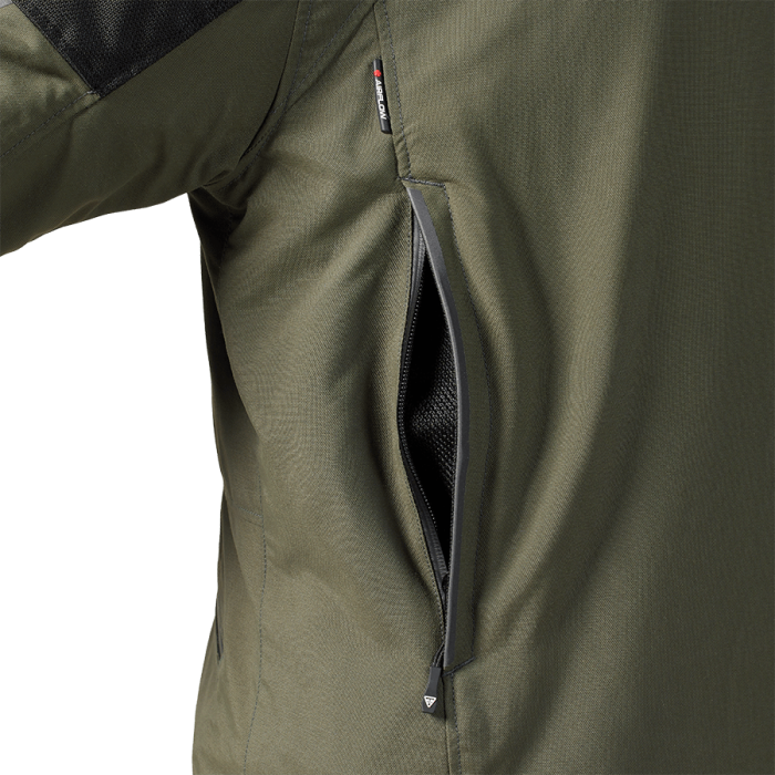 Airflow is managed by opening zip vents to allow cool air to pass through on warmer days