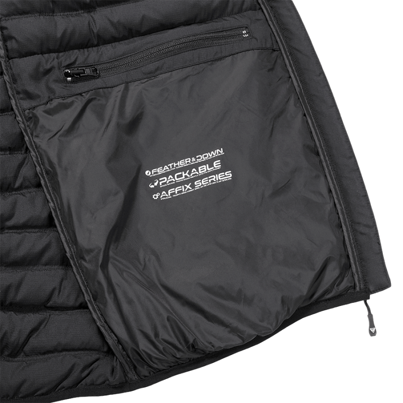 Designed as part of our Affix series, this midlayer can be worn under any of our adventure touring outer jackets. The lightweight design contains a baffle style tubing which holds a down and feather combination 90/10, 700 fill that traps heat to evenly distribute throughout, ensuring ultimate temperature stability. This gilet also packs down neatly into its own storage compartment, so you can keep it handy and clean in your bag or bike box.