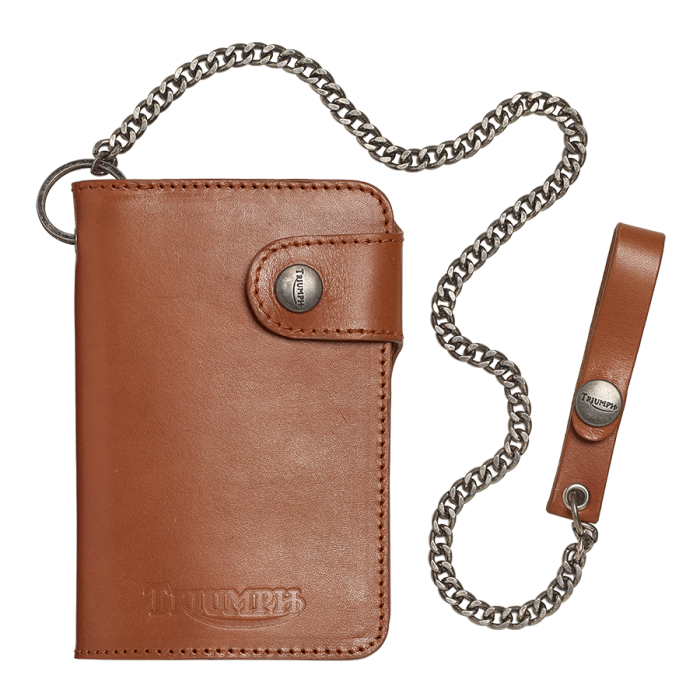 This classic biker wallet design is crafted from strong durable top grain premium leather meaning it will get better with age and last for years to come. It provides compartments for cards, notes and coins, fastens with a metal popper closure. It comes with an attached chain with leather key fob allowing the wearer to attach the wallet onto jeans or a belt for added security. Made in Portugal, available in Black and Tan.UPS Shipping