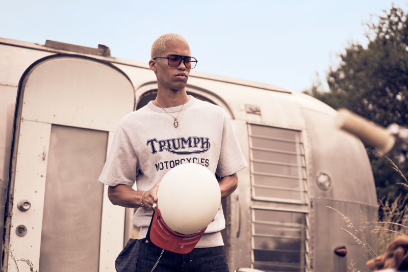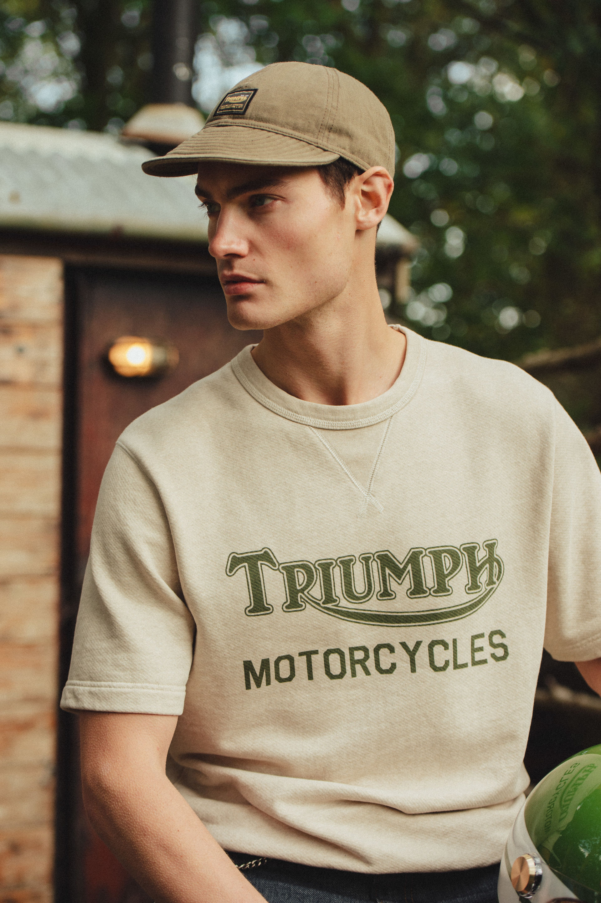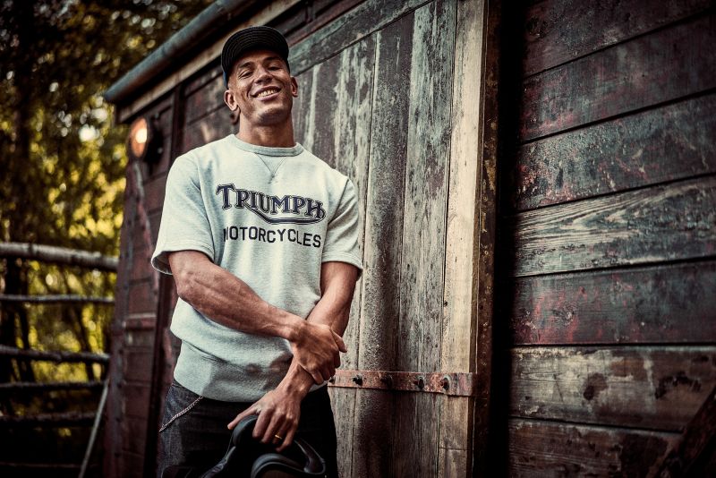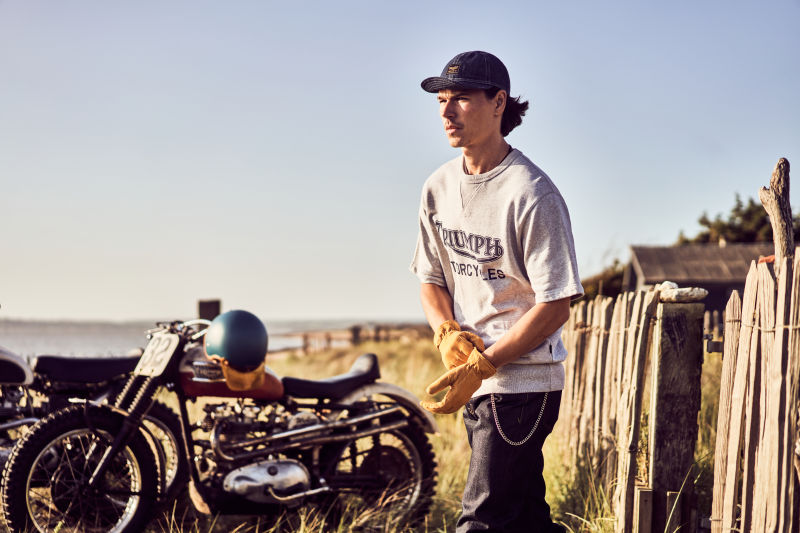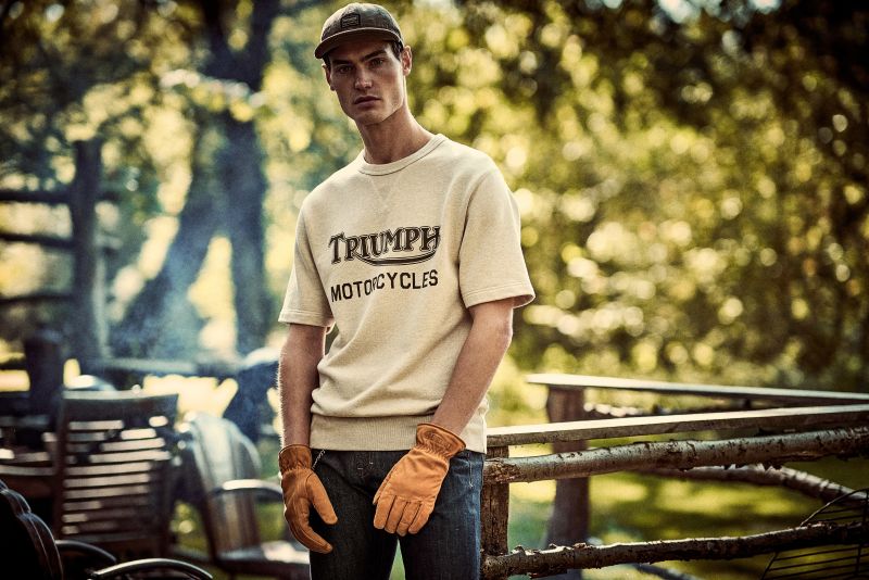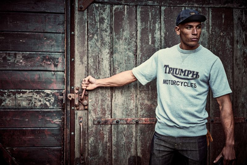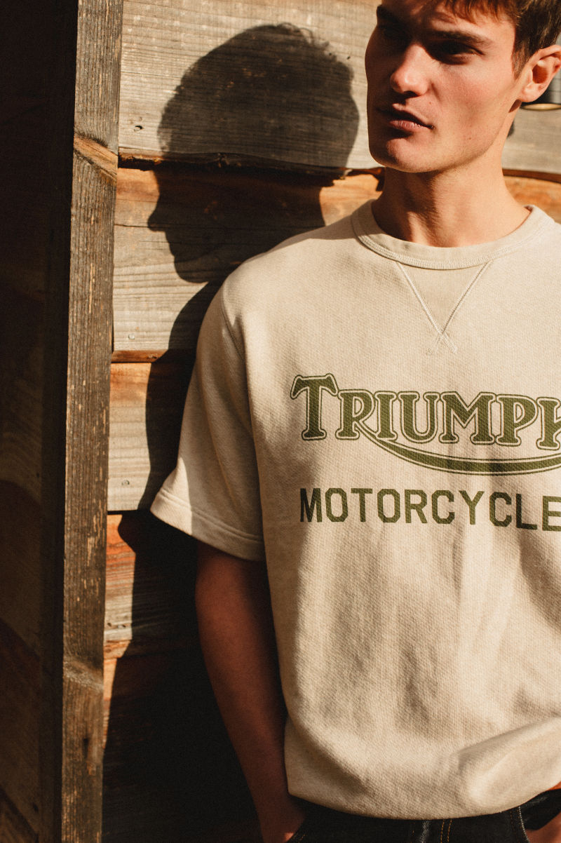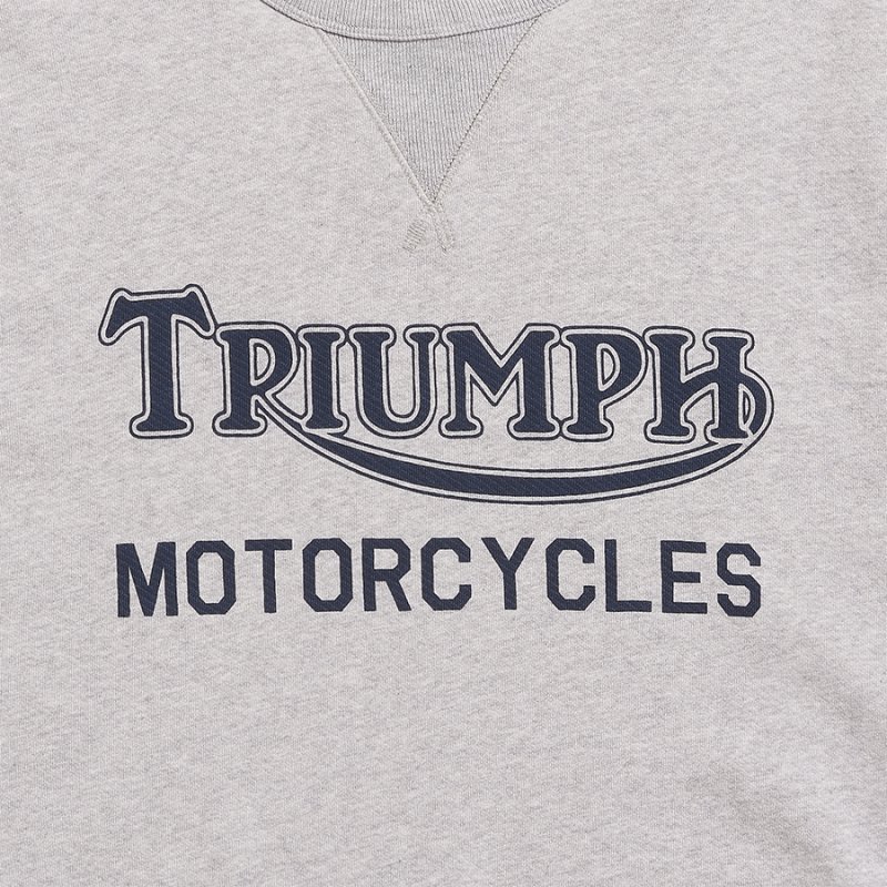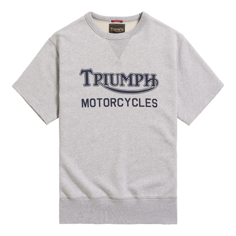 A heavyweight 100% cotton crew neck, short sleeve sweatshirt with classic design and authentic V insert neck detail. Featuring soft-touch graphic print in indigo and signature Triumph-branded woven label at the side seam.UPS Shipping