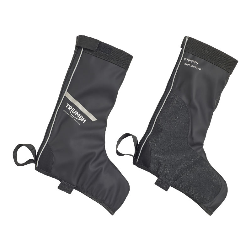 Lightweight waterproof rain over boots with tape sealed seam construction designed to be worn over your existing motorcycle boot.