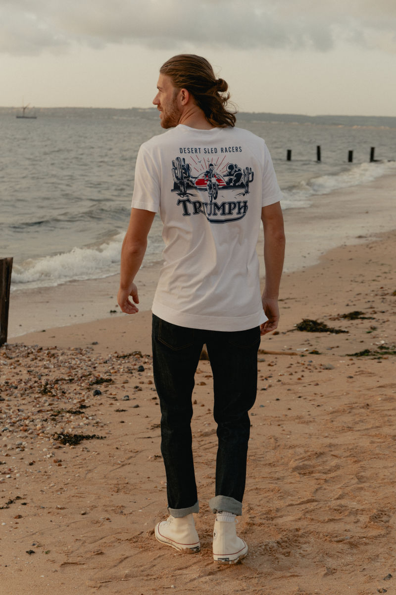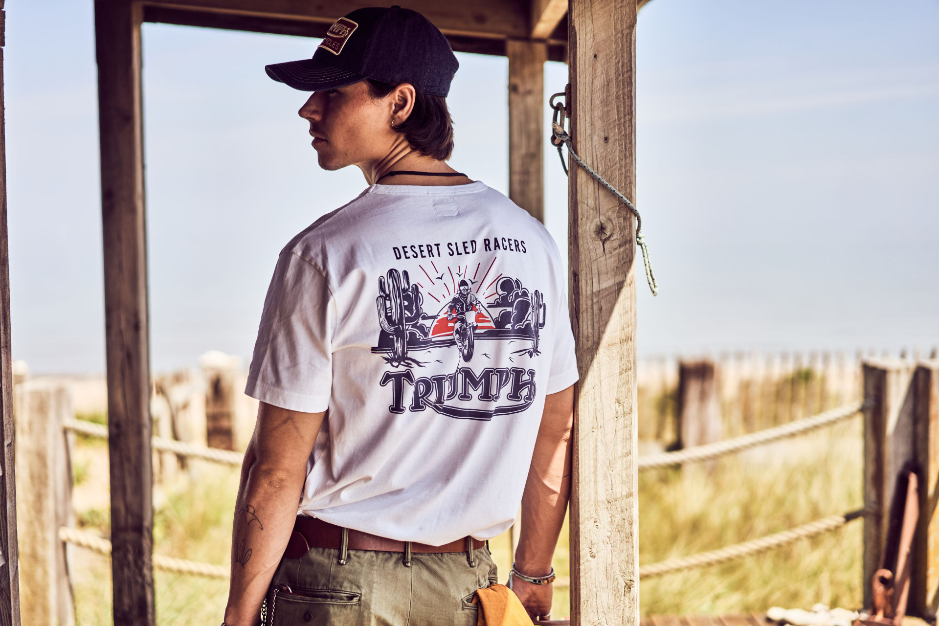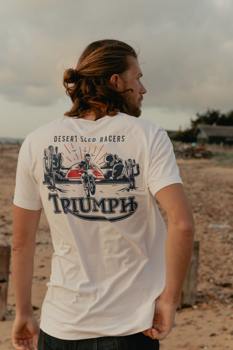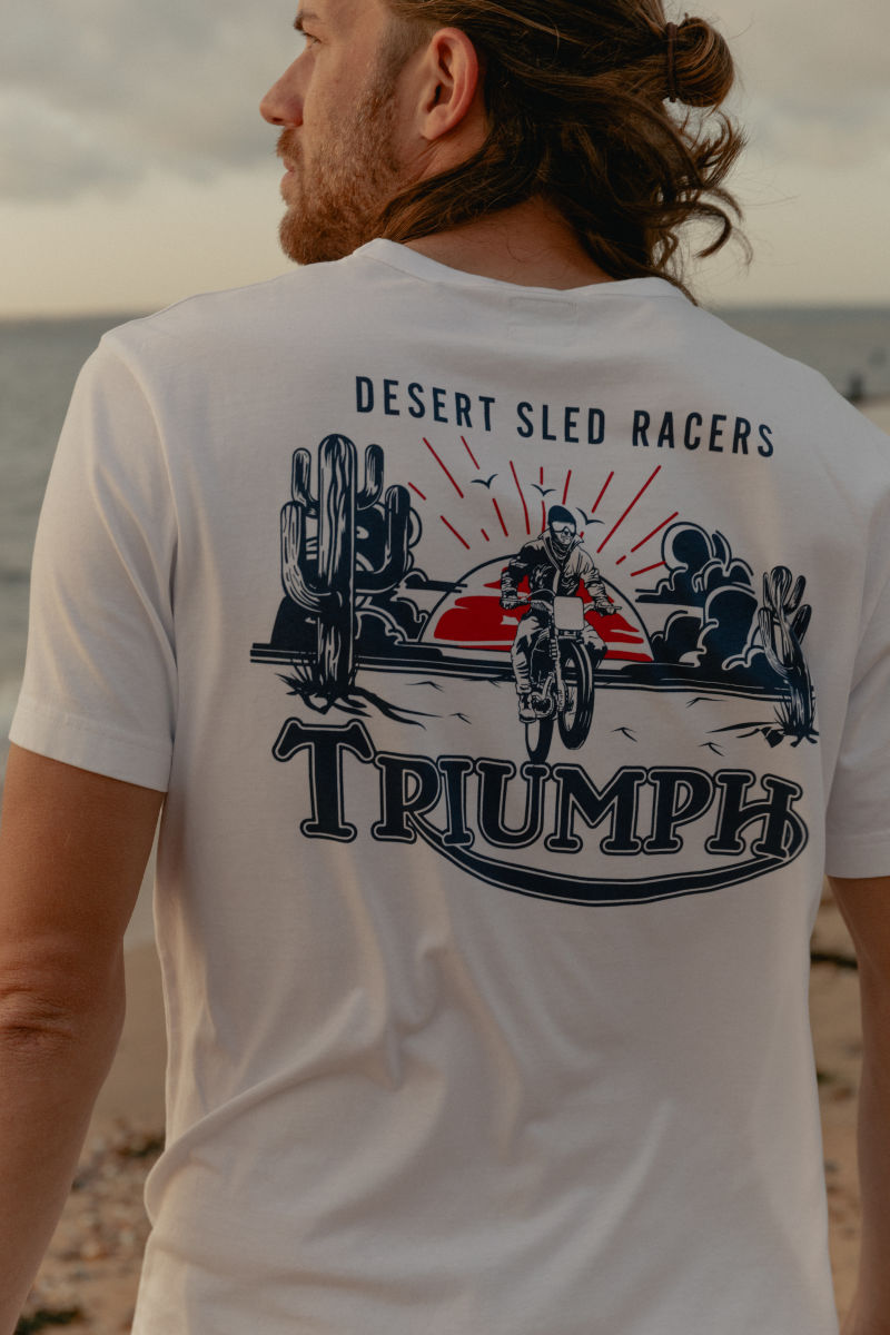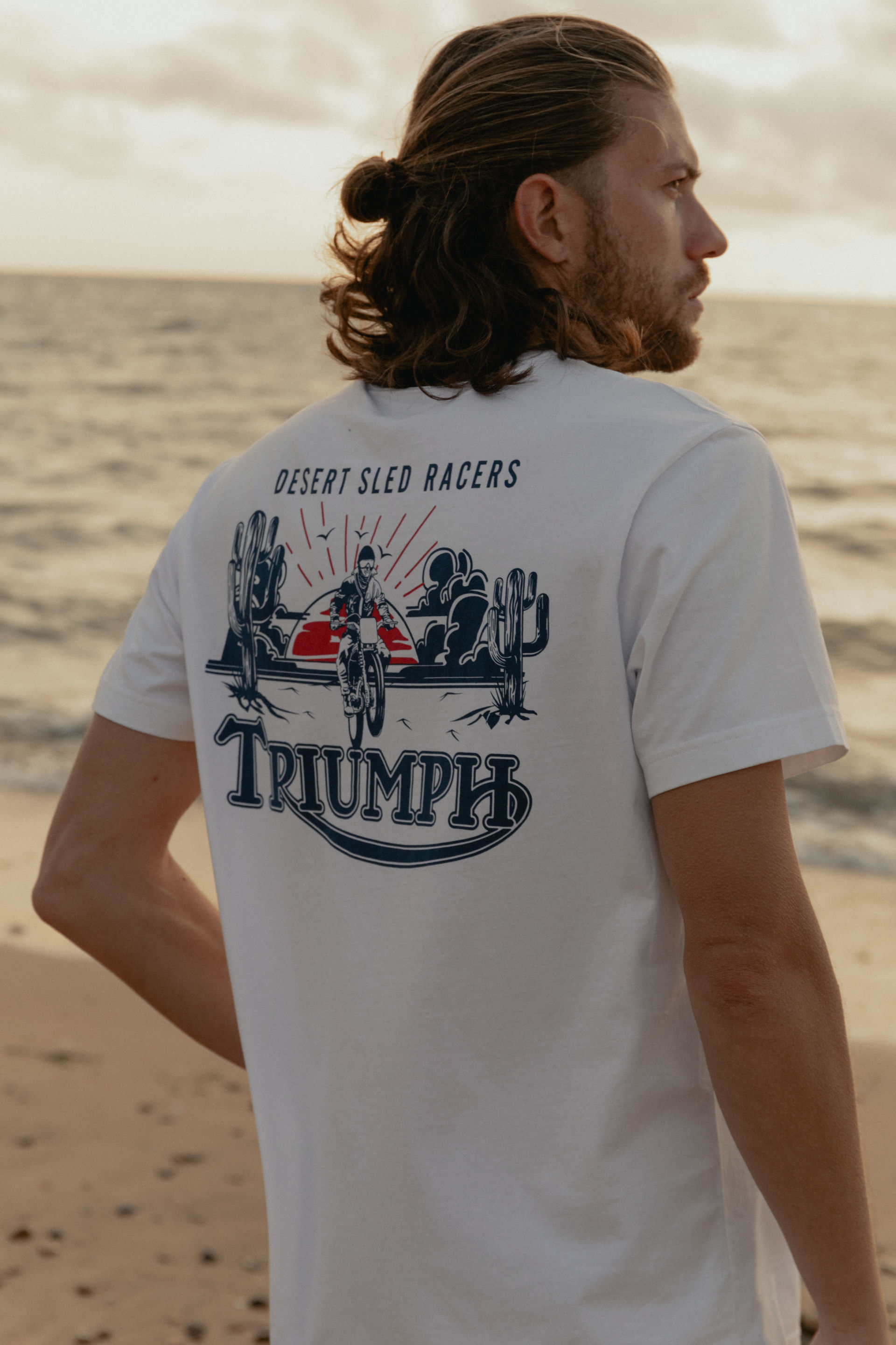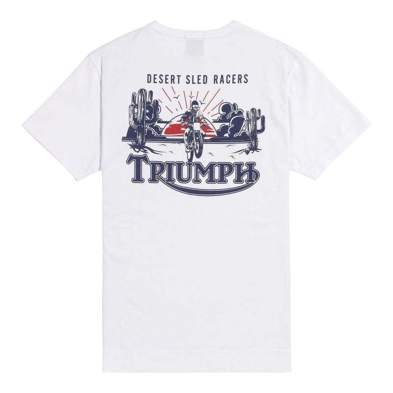 Embodying the spirit of off-roading, this graphic tee captures the rugged landscape of the desert along with our iconic Triumph Lifestyle Heritage Logo.UPS Shipping