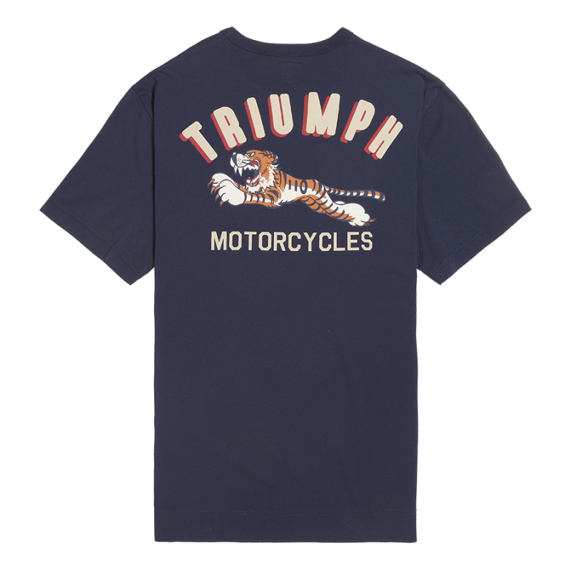 A classic fit tee with left chest patch pocket and "Leaping Tiger" back graphic.